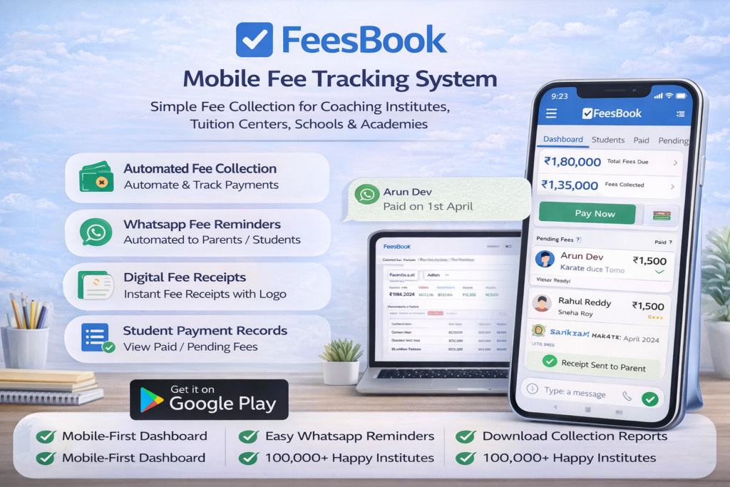 FeesBook is a mobile-first platform used widely by small coaching centers and training academies.