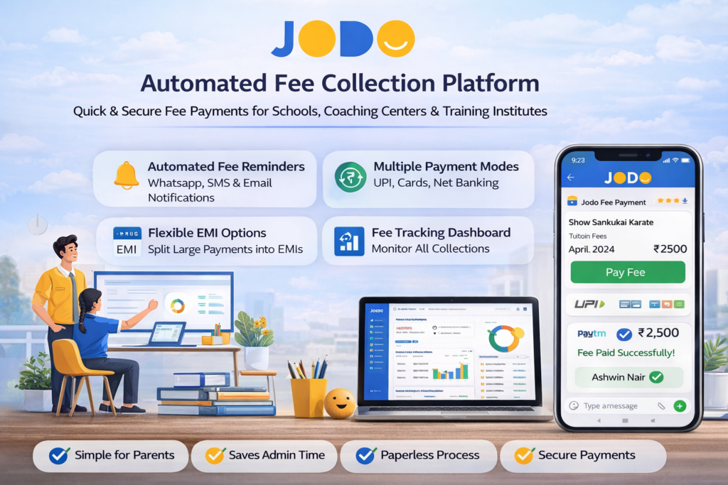 Jodo is widely used by schools, colleges, and coaching institutes. It provides advanced automation features and supports a variety of digital payment methods.